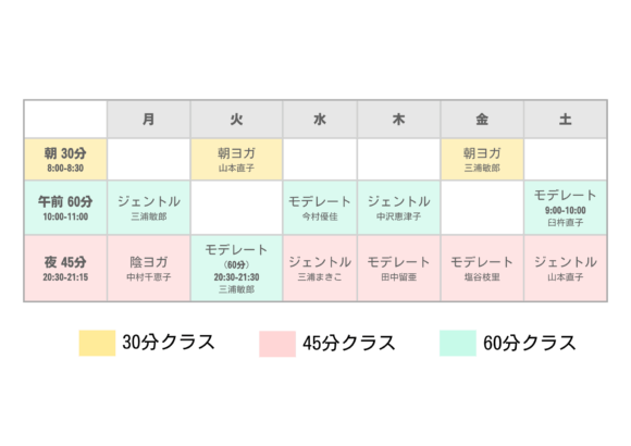 - これまでの40分のクラスは45分に拡大し、週3本だった60分クラスは週5本に増えます。