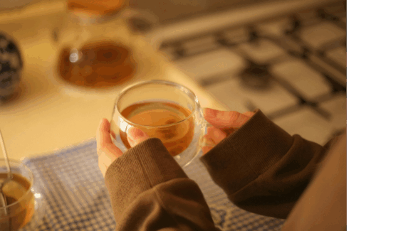 - 体を温めるハーブティーやスパイスティー、スープを取り入れる